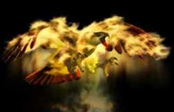 lleno de la magia de la isla de las llamas. Él vuela, este